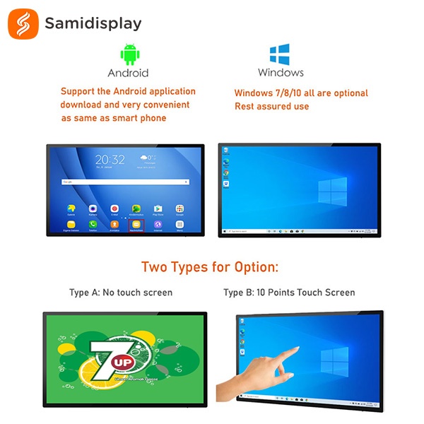 The built-in Android media player allows you to easily update on-screen content via USB plug and play. Alternati vely,