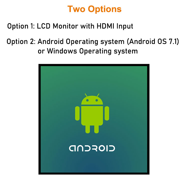 Square LCD Monitor with HDMI Input or Android Operating system (Android OS 7.1) or Windows Operating system