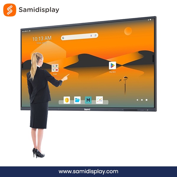 The Samidisplay 75 inch interactive display is built with durability and usability in mind. Anti-glare tempered glass, slim bezels, and fanless cooling ensure it’s ideal for long hours of classroom use. It also supports Android or dual OS (Android + Windows), giving schools flexibility to run their preferred teaching software or apps. With built-in wireless screen sharing, teachers can display content from tablets, smartphones, or laptops instantly.